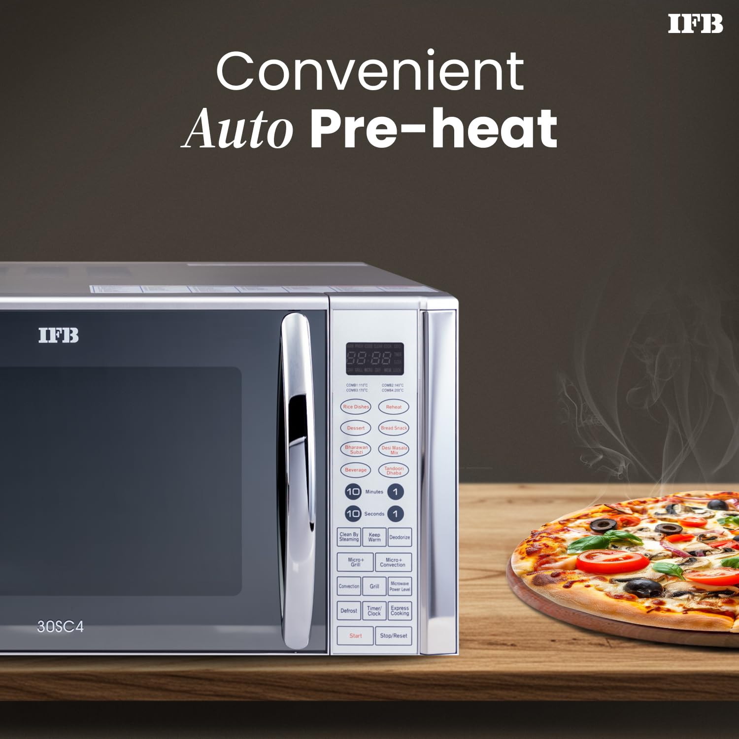 - Convection Technology: The IFB 30SC4 boasts convection technology, and this is a game-changer. Unlike standard microwaves that simply heat food with radiation, the convection feature circulates hot air, similar to a traditional oven. This ensures even cooking, browning, and crisping, so you can bake delicious cakes, pizzas with a golden crust, and perfectly roasted chicken. Benefit: Say goodbye to unevenly cooked food and hello to professional-quality results in the comfort of your own kitchen.